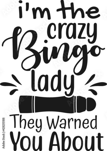 I'm the crazy bingo lady they warned you about, Funny Bingo Quote, Bingo Cutting File, Bingo shirt design vector, Bingo typography, gift for bingo player, Bingo lover svg