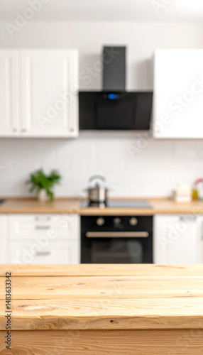 Im Vordergrund ein Tisch, im Hintergrund unscharf eine Küche