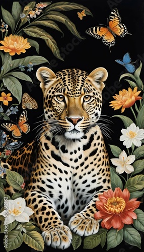 image background ad flowers painting surrounded a bottom lizard black half leopard flowers butterflies flower art nature painting cat rose wildlife leopard animal floral pattern garden pattern bird