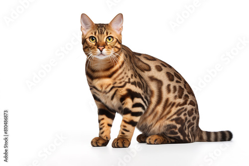 Image of a bengal cat full shape on white background. Mammals. Pet. Animals.