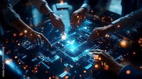 image of a diverse team of business professionals working together on a project using an enterprise resource planning ERP software system to enhance productivity decision making