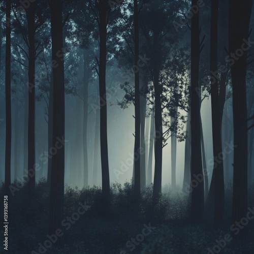 image of a forest clearing shrouded in twilight mist isolated on a plain background