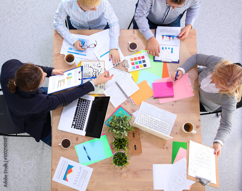 Image of business partners discussing documents and ideas at meeting