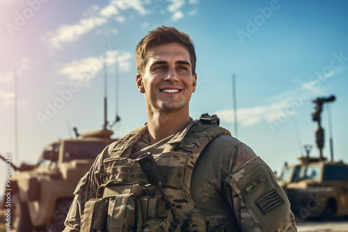 Image of courageous brave young soldier created with generative AI technology