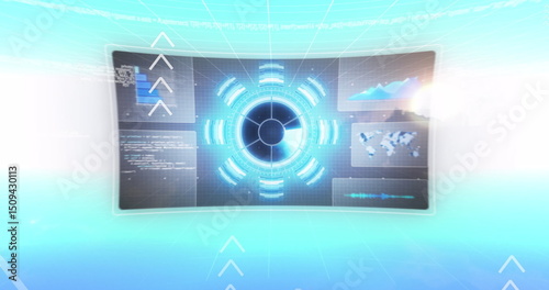 Image of data processing on screen over light blue background