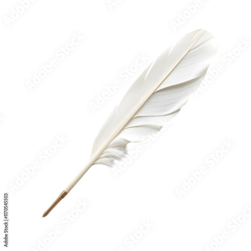 Image of feather pen on white background.