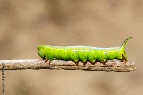 Image of Green Caterpillars of Moth on the branches on a natural background. Insect. Animal.