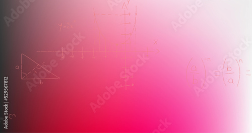 Image of hand written mathematical formulae over pink background