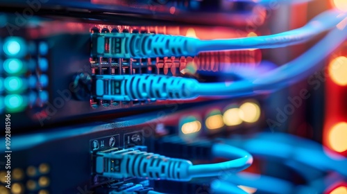 Image of network cables and server indicators in a data center showing intricate connectivity