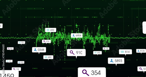 Image of social media icons floating over data processing against black background