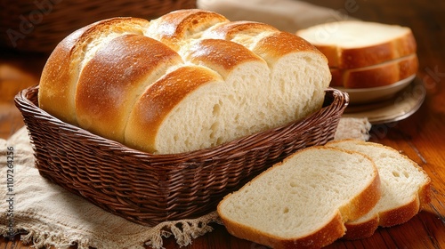 image of sourdough bread in a basket with slices of the bread cut and displayed beside it.