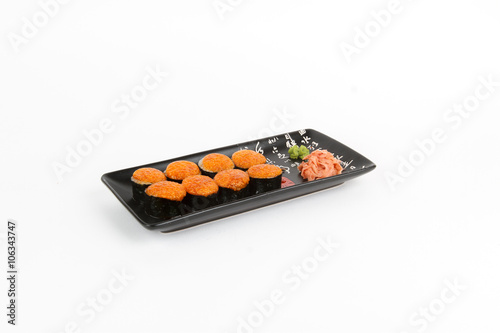 Image of tasty hot sushi set with shrimps