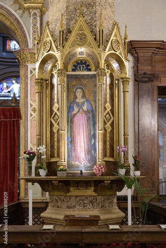 Image of the Madonna delle Grazie by Giannicola di Paolo in a neo-Gothic tabernacle, San Lorenzo Cathedral, Perugia, Italy.