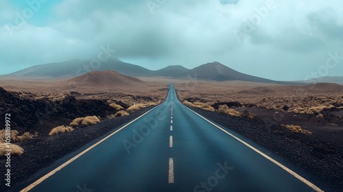 Image related to unexplored road journeys and adventures.Road through the scenic landscape to the destination in Lanzarote natural park.