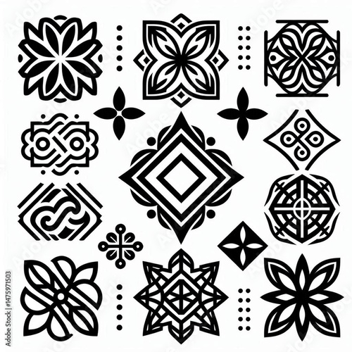 image, vector, design, illustration, set of black and white patterns, abstract ornament, abstract vector background, seamless geometric pattern with geometric elements.