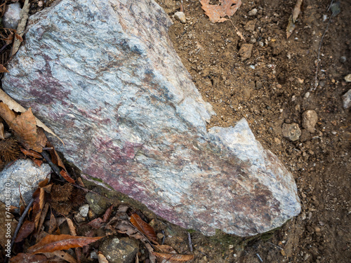imagen detalle textura suelo de tierra y una piedra enorme enterrada