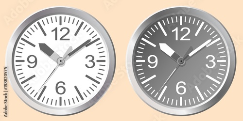 Images of wall clocks. Light and dark options. The concept of world time. Internet Marketing. Daily infographics.