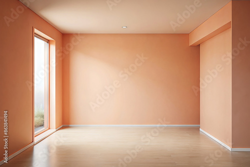 Imagine a spacious room painted orange, featuring a window and no furniture