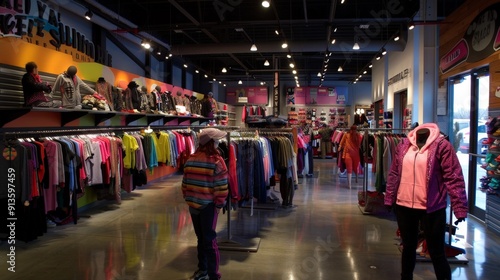 Imagine a vibrant clothing store for teenagers, with upbeat music and trendy outfits.