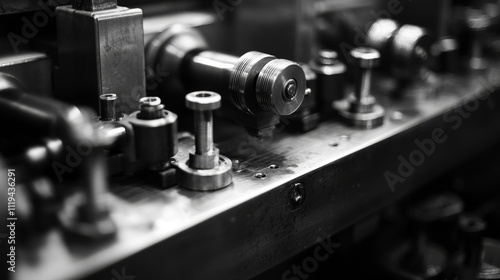 imagine prompt: A close-up of a factory assembly line, emphasizing minimalist machinery and tools, arranged in an orderly fashion to convey efficiency and precision in the