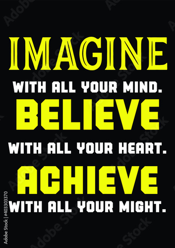 Imagine With All Your Mind. Believe With All Your Heart. Achieve With All Your Might. Inspirational Vector File