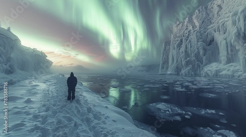Immersed in ethereal hues, the night sky dances with the enchanting aura of the Aurora Borealis, painting dreamy visions above.