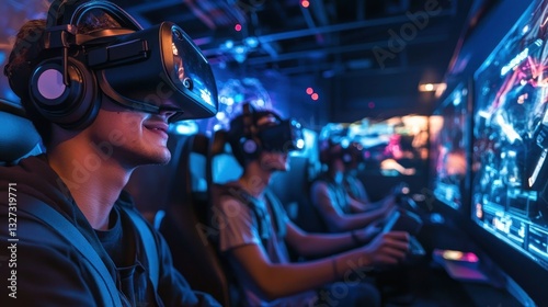 Immersive gaming experience: Young adults engaging in virtual reality gaming arena