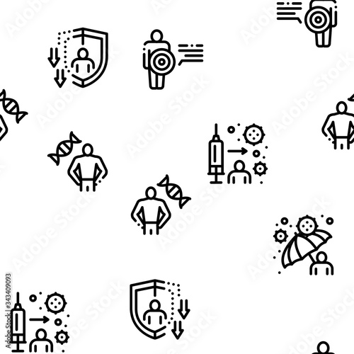 Immunity Human Biological Defense Seamless Pattern Vector Thin Line. Illustrations