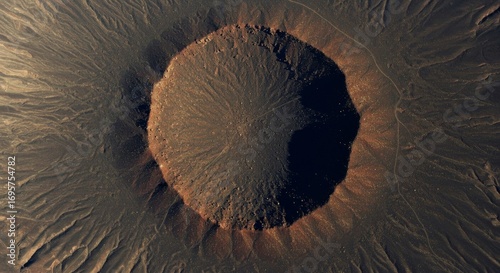 Impact Crater on Mars, Showing Radial Ejecta Patterns and Surface Textures from Orbit
