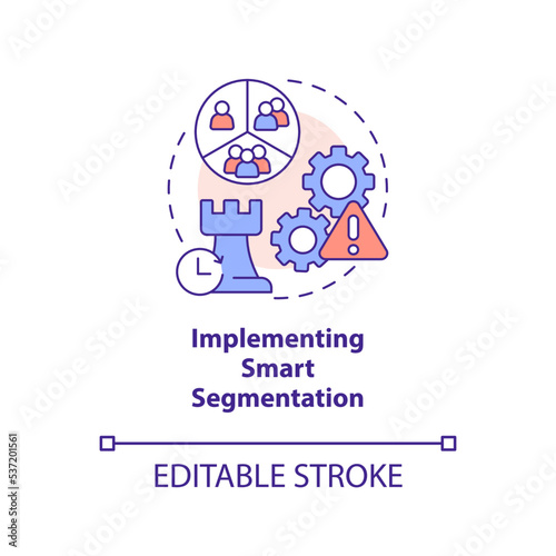 Implementing smart segmentation concept icon. Marketing strategy. Customers groups abstract idea thin line illustration. Isolated outline drawing. Editable stroke. Arial, Myriad Pro-Bold fonts used