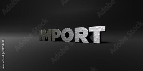 IMPORT - hammered metal finish text on black studio - 3D rendered royalty free stock photo. This image can be used for an online website banner ad or a print postcard.