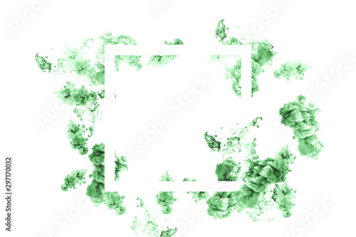 Impression of the frame with copy space on abstract liquid shapes in mint color