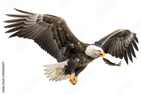 Impressive eagle with fish in talons on a clear isolated on white background PNG