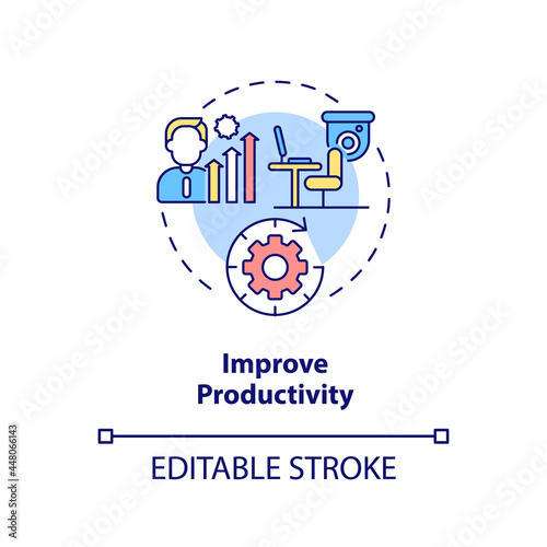 Improve productivity concept icon. Digital surveillance. System monitoring activity abstract idea thin line illustration. Business efficiency. Vector isolated outline color drawing. Editable stroke