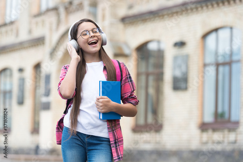 Improve your spoken English. Happy kid listen and speak English. Listening and speaking. Speak fluent and confident English. Learning foreign language. Online courses. Speak more fluently, copy space