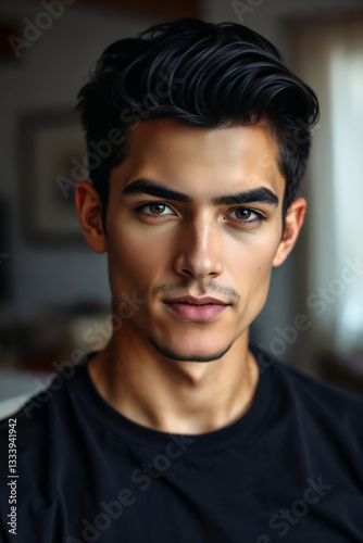 Improved jawline after mewing. Portrait of young guy after orthotropics, oral posture training. Looksmaxxing concept