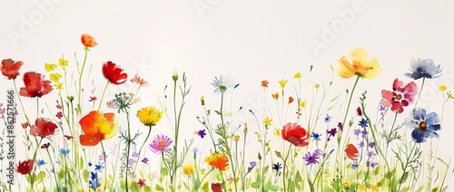 In a minimal style, watercolor arrangements with flowers are used as a spring and summer background.