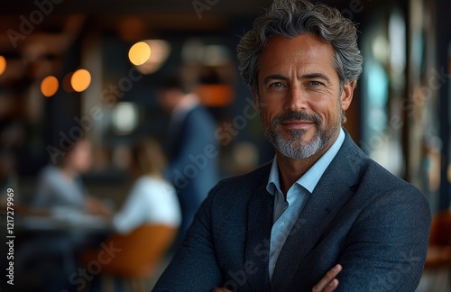 In an office setting, a diverse group of confident individuals is depicted in a portrait, focused on collaboration, leadership, and partnership. They smile with their arms crossed, symbolizing