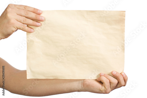In man's hands an old paper