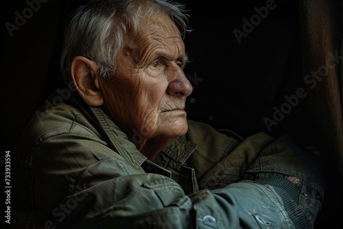 In quiet reflection, the aging veteran contemplated his memories.