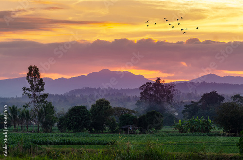 In the evening, the golden sky, mountain views in Chiang Mai Thailand