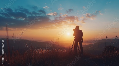 In the heart of nature, a photographer's silhouette tells the story of capturing the world's wonders