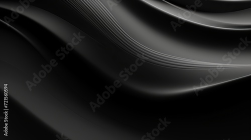 In this 3d rendering illustration, a dark surface is depicted with reflections, minimal black waves in the background, blurry silk waves in a tunnel, and minimal soft grayscale ripples flowing.