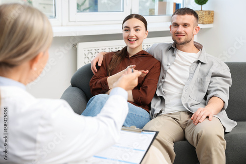 In vitro fertilization (IVF). Couple having consultation with doctor in reproductive clinic