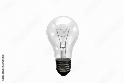 Incandescent bulb on white solution lightning bulb emitting light, isolated on white.