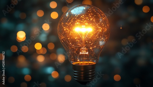 Incandescent light bulb shining brightly amidst a web of interconnected industries