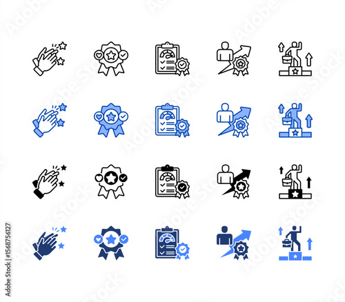 Incentive icon sheet multiple style collection. Praise, Award, Performance report, Best employee, Career growth.