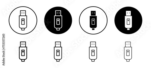 Inclined pendrive vector icon set collection. Inclined pendrive Outline flat Icon.