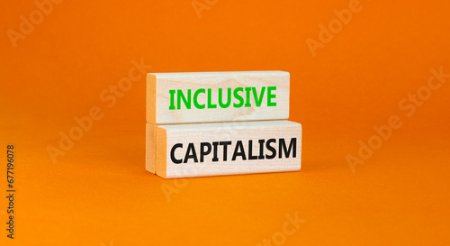 Inclusive capitalism symbol. Concept words Inclusive capitalism on beautiful wooden blocks. Beautiful orange table orange background. Business inclusive capitalism concept. Copy space.