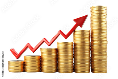 Increasing Stacked Golden Coins – Money Growth Icon PNG for Financial and Business Designs